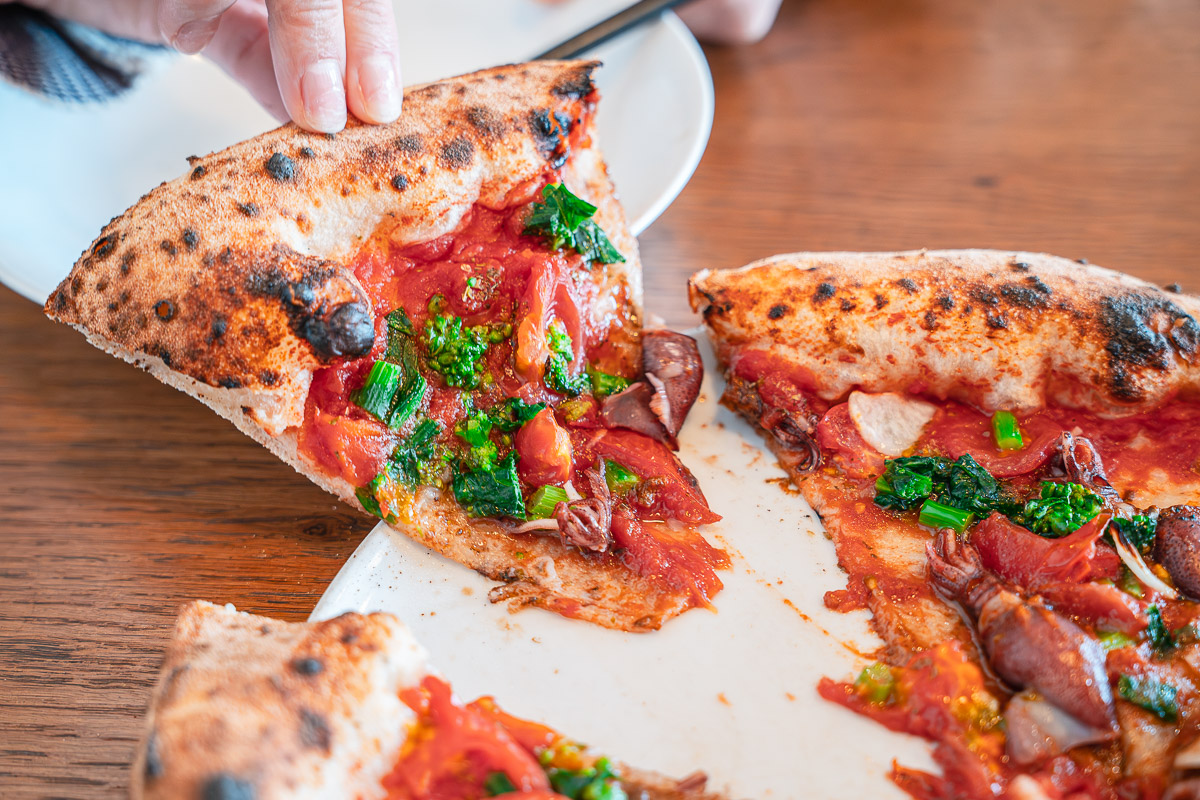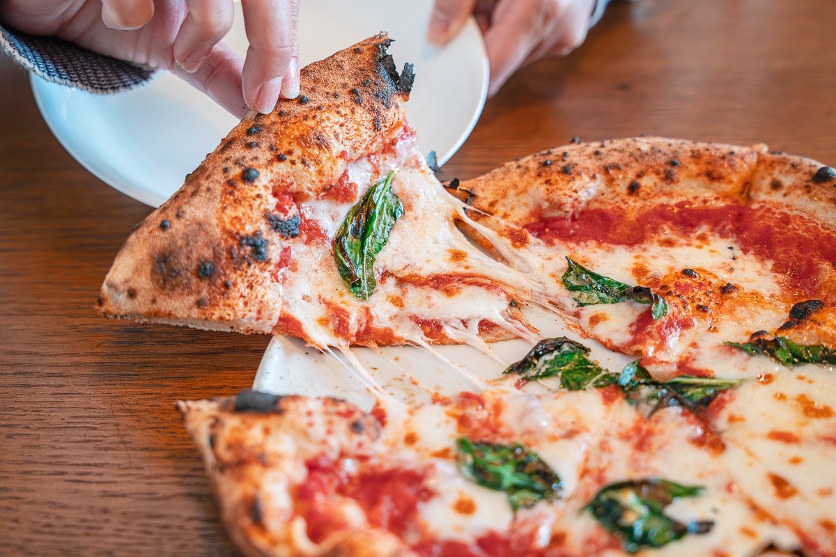 一口食べてみると、表面はパリッと、中はもっちり。トマトソースの酸味とモッツァレラチーズのコクがたまりません。シンプルだからこそわかる、圧倒的な美味しさ。