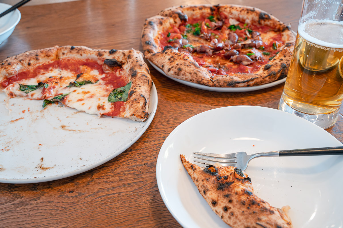 まずは王道のマルゲリータから。運ばれてきた瞬間、薪窯特有の香ばしい匂いがふわりと漂います。