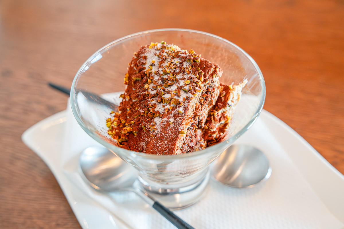 食後にはピスタチオのティラミスを。ピスタチオの風味がしっかり効いていて、こちらも文句なしの美味しさ。最後まで大満足のランチタイムでした。