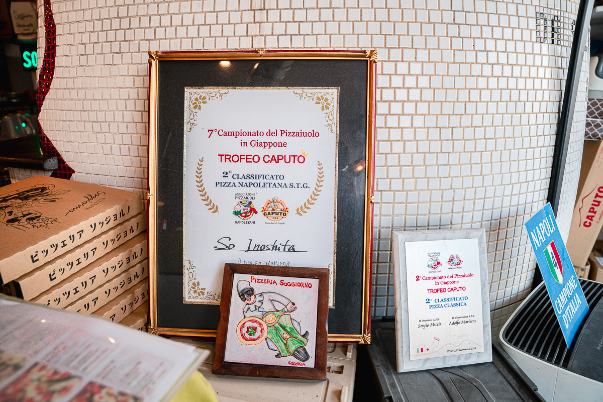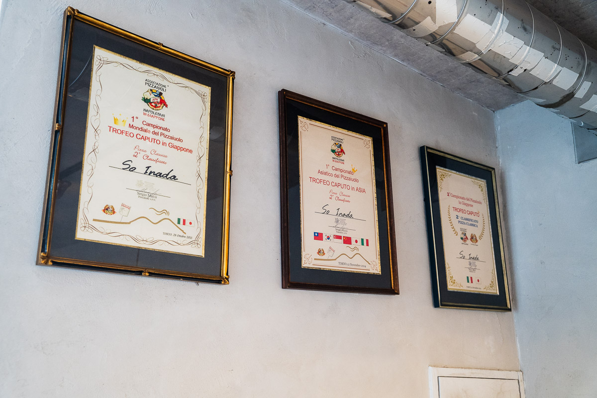 店内に入ると目に留まるのが、「TROFEO CAPUTO」と書かれた賞状の数々。